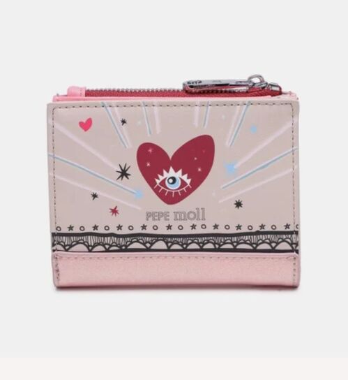 La cartera 261701 combina funcionalidad y diseño en una pieza que destaca desde el primer vistazo. Su estética en tonos rosados con acabado brillante se mezcla con un frontal ilustrado lleno de detalles, creando un accesorio práctico pero con un carácter muy definido que eleva cualquier look.