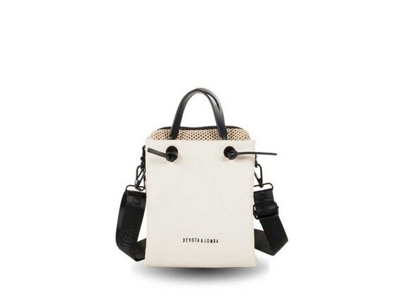 Bolso bandolera Devota & Lomba Sack blanco roto, compacto y versátil, con doble uso (mano o cruzado) y diseño moderno ideal para el día a día.