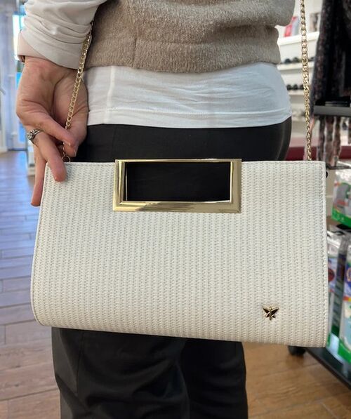 ✔ Cierre metálico frontal que se convierte en el detalle protagonista del bolso.