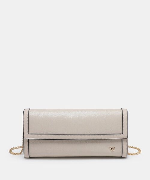 El bolso de mano 261420 de Pepe Moll es un modelo elegante y sofisticado diseñado para acompañarte en ocasiones especiales o en esos momentos en los que buscas un complemento que eleve tu look. Su formato alargado y su silueta estructurada aportan un aire refinado que lo convierte en una pieza perfecta para estilismos más cuidados.