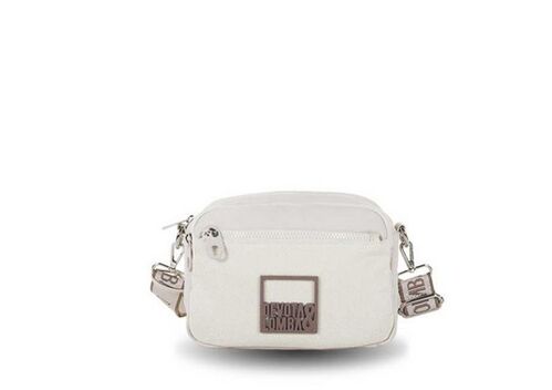 Bandolera Devota & Lomba Dune en color perla, elegante y funcional, con múltiples compartimentos y correa ajustable, perfecta para el uso diario.