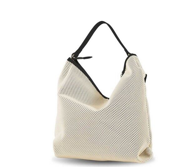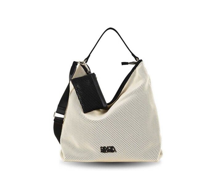 Bandolera Devota & Lomba Net en color off white, moderna y ligera, con diseño en rejilla, cierre de cremallera, bolsillos interiores y correa ajustable ideal para uso diario.