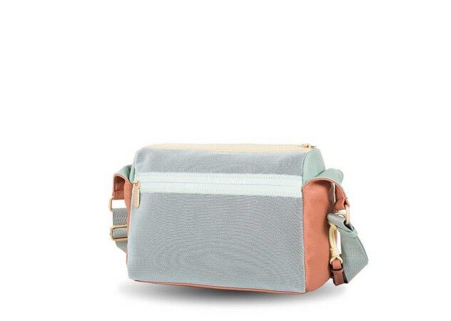 Dispone de un compartimento principal amplio con cierre de cremallera, acompañado de bolsillos interiores y exteriores que facilitan la organización de objetos personales como móvil, cartera, llaves y pequeños accesorios. Su distribución permite mantener todo ordenado y accesible.