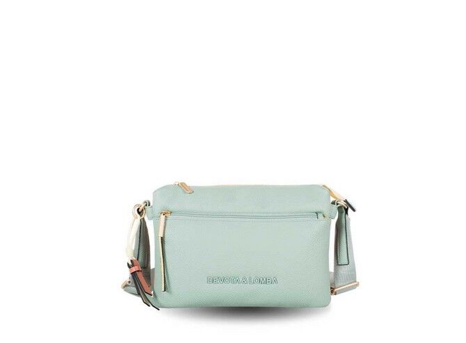Bandolera Devota & Lomba Fever en color turquesa, moderna y funcional, con cierre de cremallera, bolsillos interiores y correa ajustable ideal para uso diario.
