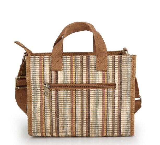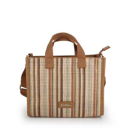 Bolso tote pequeño de la colección Amore. Fabricado con efecto rafia y piel sintética. Además está fabricado con plásticos libre de PVC.