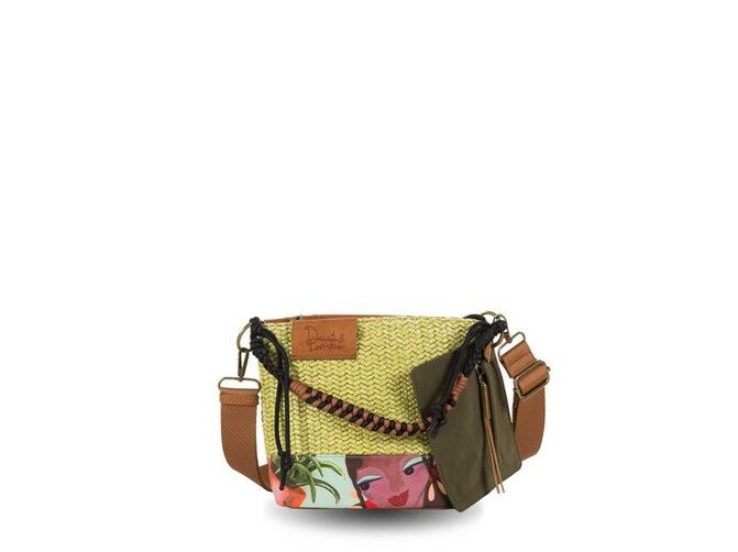 Bandolera Devota & Lomba Muse en color verde, ligera y funcional, con diseño en paja y nylon, cierre de cremallera y correa ajustable ideal para uso diario.