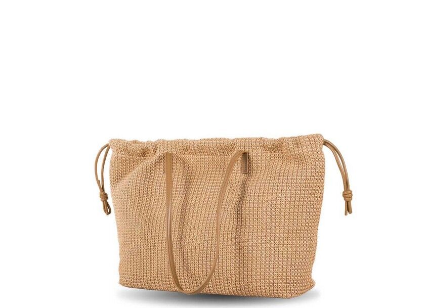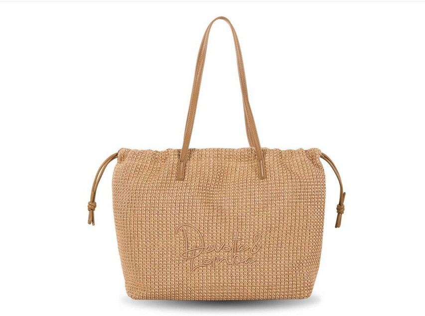 Bolso Devota & Lomba Flock en color taupe con acabado efecto paja. Diseño ligero, elegante y funcional con amplio espacio interior. Ideal para uso diario con estilo versátil.